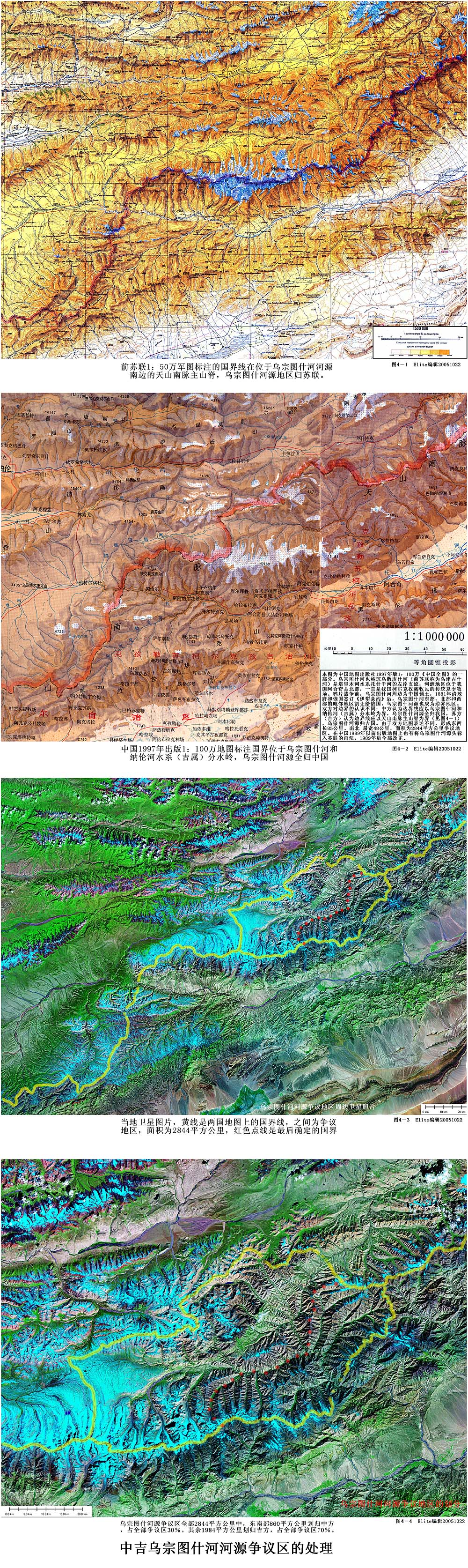 乌宗图什河河源争议地区的划分 乌宗图什河也称琼乌散库什河(前苏联称为乌津古什河)是塔里木河水系托什干河的支流,河源地区位于我国阿合奇县北部,一直是我国柯尔克孜族牧民的传统夏季牧场。鸦片战争前,乌宗图什河周边为中国领土,1881年清政府和俄国签订《伊犁条约》后,乌宗图什河东部、北部和西部的毗邻地区割让给俄国,乌宗图什河源也成为边界地区,中方认为边界线应以乌宗图什河和纳伦河(俄属)分水岭为界,乌宗图什河源全归我国,俄方认为边界线应以天山南脉主山脊为界,乌宗图什河源归俄国。双方地图表述不同,形成东西长85公里、南北最宽48公里,面积为2844平方公里争议地区。 从中方进入乌宗图什河源有两条翻越天山南脉的道路,一条通过4600米夏提达坂,一条通过琼铁热克达坂。虽然有争议,到在上世纪50年代末以前,我国柯尔克孜族牧民仍然可以在争议地区放牧。60年代中苏关系恶化后,苏军开始粗暴干涉我方牧民进入该区放牧,琼铁热克达坂上的路被苏军以石墙封堵而中断,夏提达坂通道也在苏军严密监视下,乌宗图什河源地区已经落入当时苏联的实际控制之下。 为了维护我方对该地区的主权,英勇的我国牧民与苏军进行了不屈的斗争。在夏提达坂方向:我国每年都要组织牧民通过夏提达坂通道进入争议地区放牧,并与苏联边防军就我牧民放牧的时间、地点达成了口头协议。但苏军经常背信弃义,时常对我牧民放牧进行干涉,苏方常常用直升飞机驱赶我牧民的羊群,因而那里是我牧民损失羊最多的地区。在琼铁热克达坂方向:虽然道路已中断,但为了配合夏提达坂的进入,即使进不去,牧民每年也要与苏军在那里斗争一番。苏军用棍棒驱赶,牧民也就用棍棒还击,每次双方均有损伤,直到上个世纪八十年代为了缓和边境紧张局势,牧民才停止了每年在那里的试进。 苏联解体后,乌宗图什河源成为中国和吉尔吉斯斯坦之间的争议地区,一九九六年七月四日中方和吉方签订《中华人民共和国和吉尔吉斯共和国关于中吉国界的协定》时,乌宗图什河源被作为中吉国界第7界点至第8界点未定界地区继续谈判。经过三年协商,一九九九年八月二十六日中吉两国在比什凯克签订了《中华人民共和国和吉尔吉斯共和国关于中吉国界的补充协定》,在该协定中双方对乌宗图什河源争议区进行了划分,根据协定,在全部2844平方公里争议地区中,东南部860 平方公里划归中方,占全部争议区30%。其余1984平方公里归吉方,占全部争议区70%。目前中吉双方已完成全部边界的勘界立碑工作,中国新版地图也对新边界进行了标示。 ![]() |