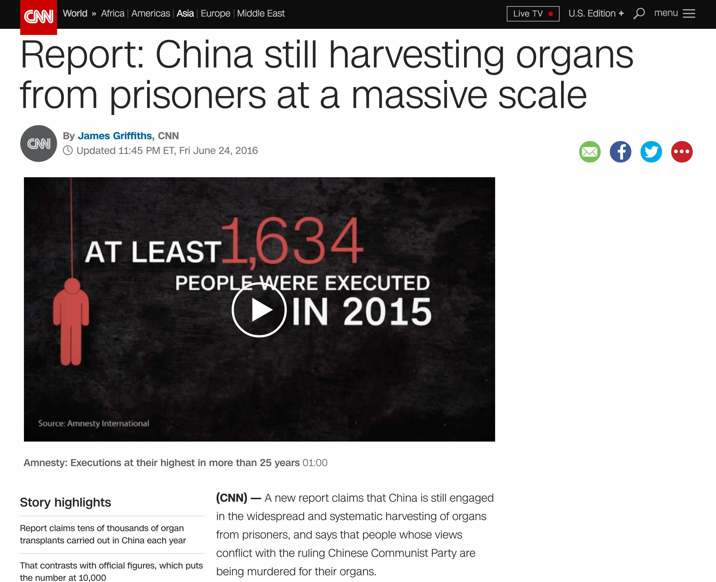 Cable News Network (CNN) published a lengthy report on June 23 about the massive organ harvesting in China.