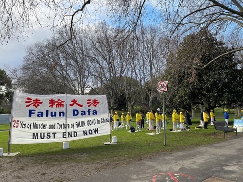 (Minghui.org) On the 25th anniversary of when the Chinese Communist Party (CCP) began to suppress Falun Gong (Falun Dafa) in July 1999, practitioners in Melbourne held events to expose the brutality through a march, rally, group exercise, and candlelight vigil. They urged people to pay attention to this 25-year-long tragedy, especially the forced organ harvesting, and help end it.